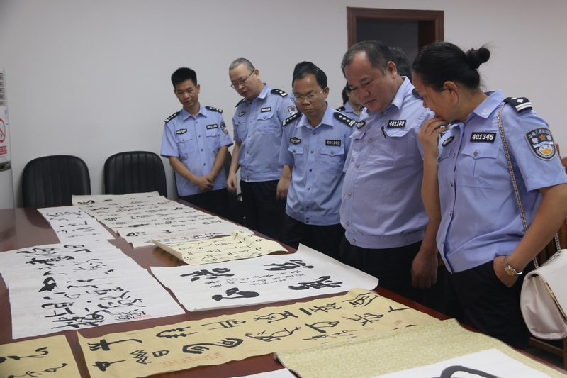 随后,在梧州市公安局宣传科科长谢学勤、民警梁观远的指导下,岑溪、长洲两地公安机关的宣传民警、兼职通讯员,就如何提升基层公安机关的涉警舆情危机的处置能力和水平、如何策划开展好警察公共关系活动、如何开展好基层机关文化建设等方面的内容进行了深入探讨交流,并观看了岑溪市公安局民警创作的书法作品。