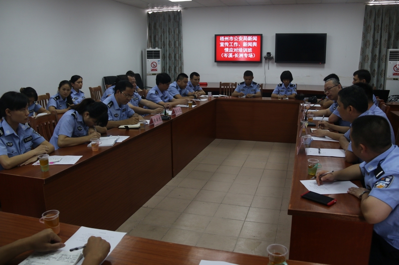 梧州市公安局宣传科科长谢学勤结合当前公安工作实际以及自身工作经验,向参与培训人员传授了如何培养新闻的敏感性、如何提升涉警舆情危机的处置能力和水平、新闻图片拍摄、图片新闻的写作技巧、各类新媒体传播平台运用等方面知识。