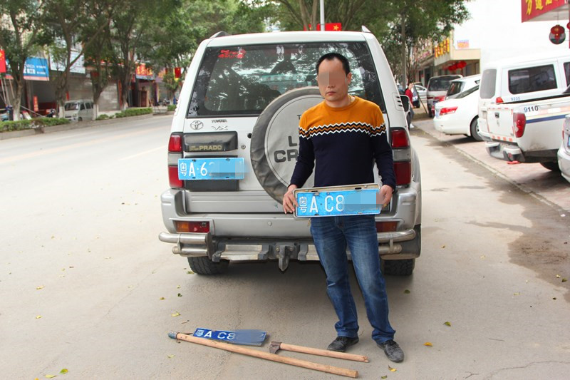 3月8日,交警城区中队和糯垌中队在行动中又查扣4辆套牌的小轿车,并在车上查获了砍刀、头套、手铐等作案工具,围观的群众无不拍手称快:“这种车害人啊,就要查,狠狠地查。”