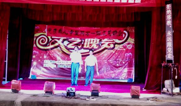 为了进一步认清邪教组织的本质与危害,增强村民的反邪教意识,提高群众抵御邪教侵蚀的能力。近日,岑溪市诚谏镇黎垌村利用“两学一做” 民间牛娘剧文艺晚会宣传反邪教。
