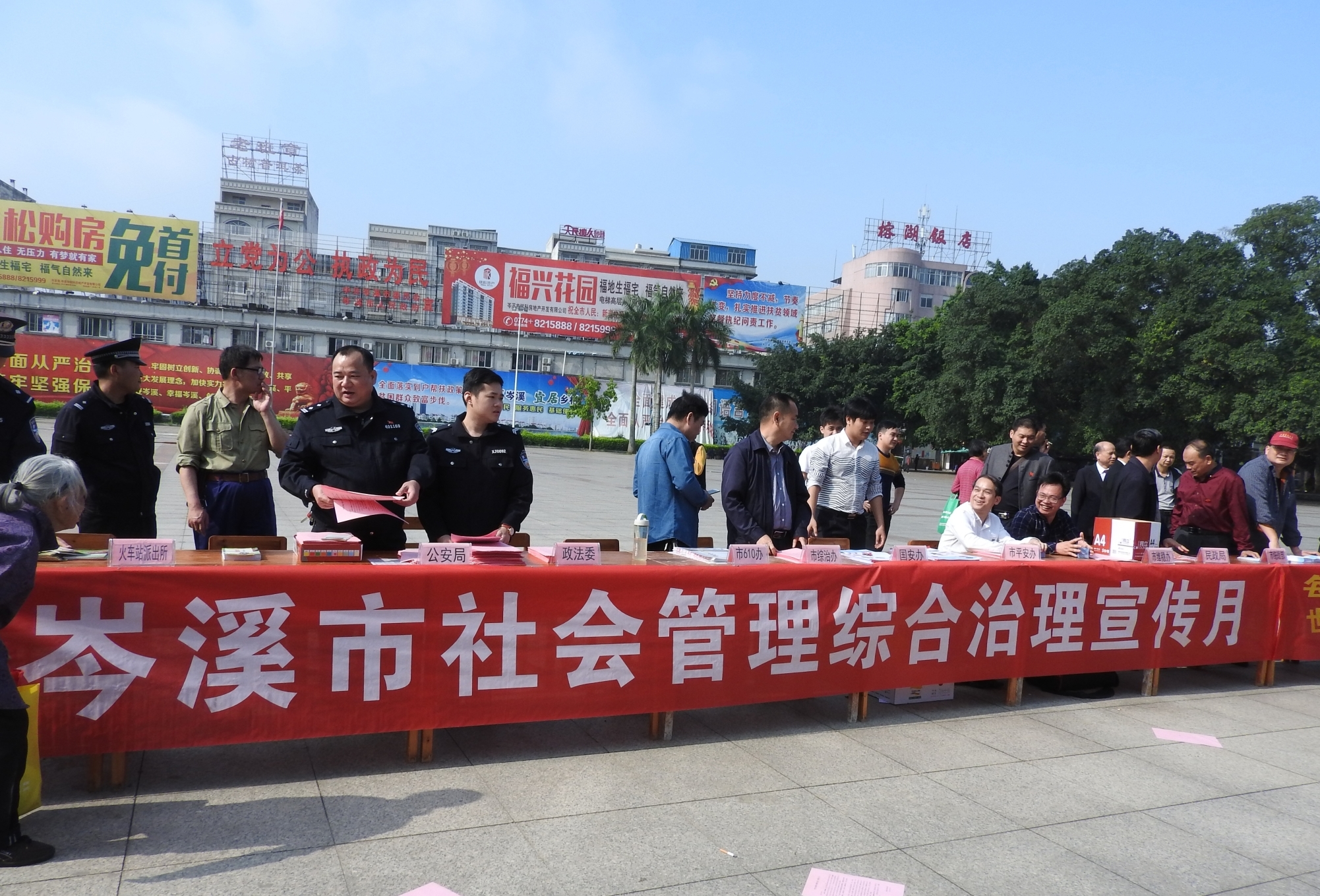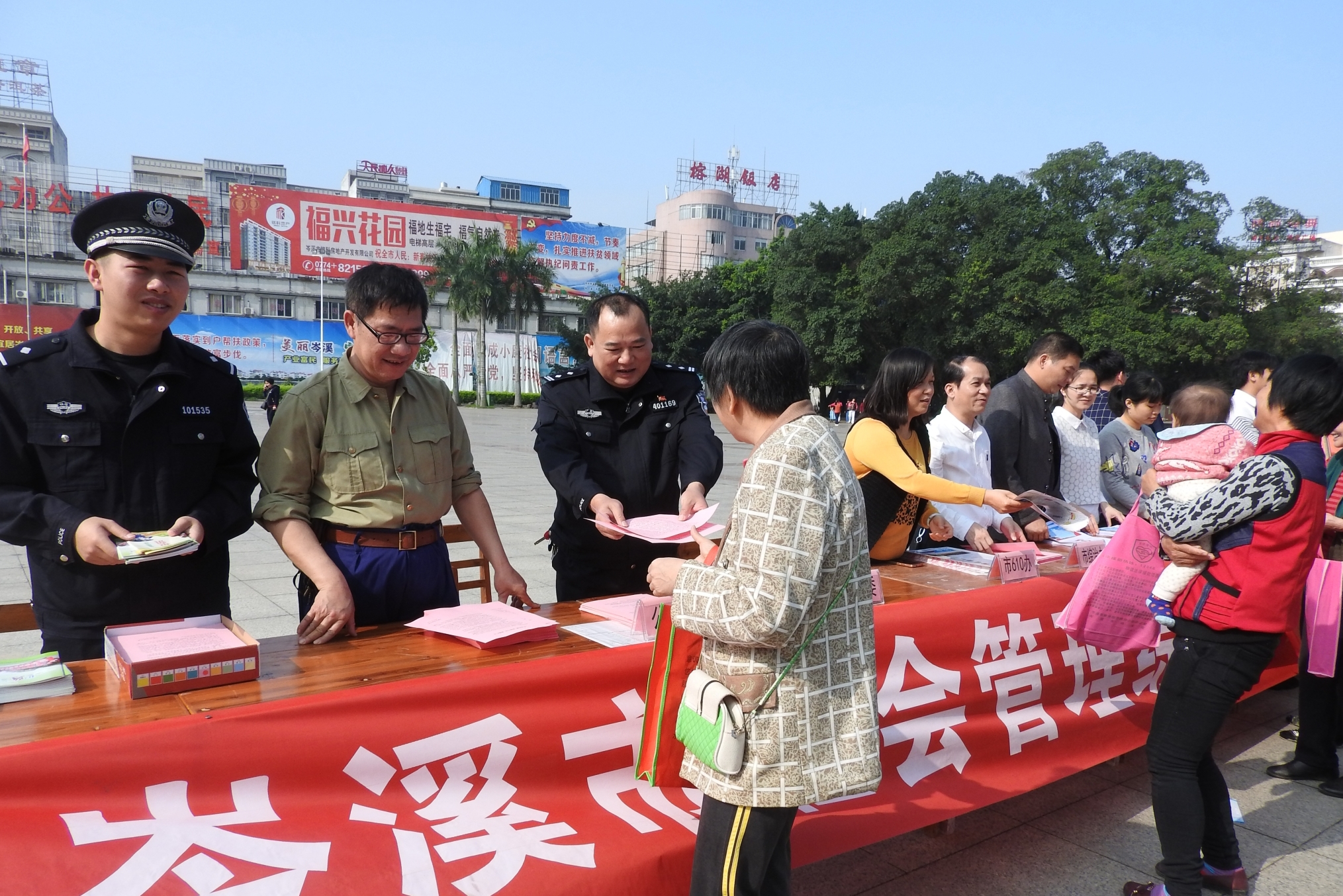 活动现场,市委政法委、统战部、综治委、平安办、公检法司、文教卫、农林水等相关单位通过设立宣传咨询服务台、悬挂条幅、立宣传展板、发放宣传资料、宣传册子、宣传物品等方式,展示党委政府和社会组织合力解决社会问题、化解社会矛盾、建设平安岑溪、共同创建和谐社会的成果,并就重点行业安全管理、禁毒知识、反邪教知识等内容开展了宣传和咨询服务。