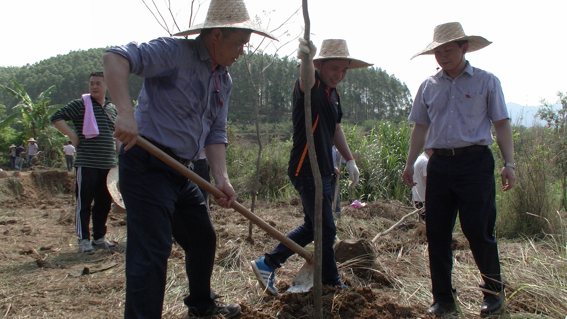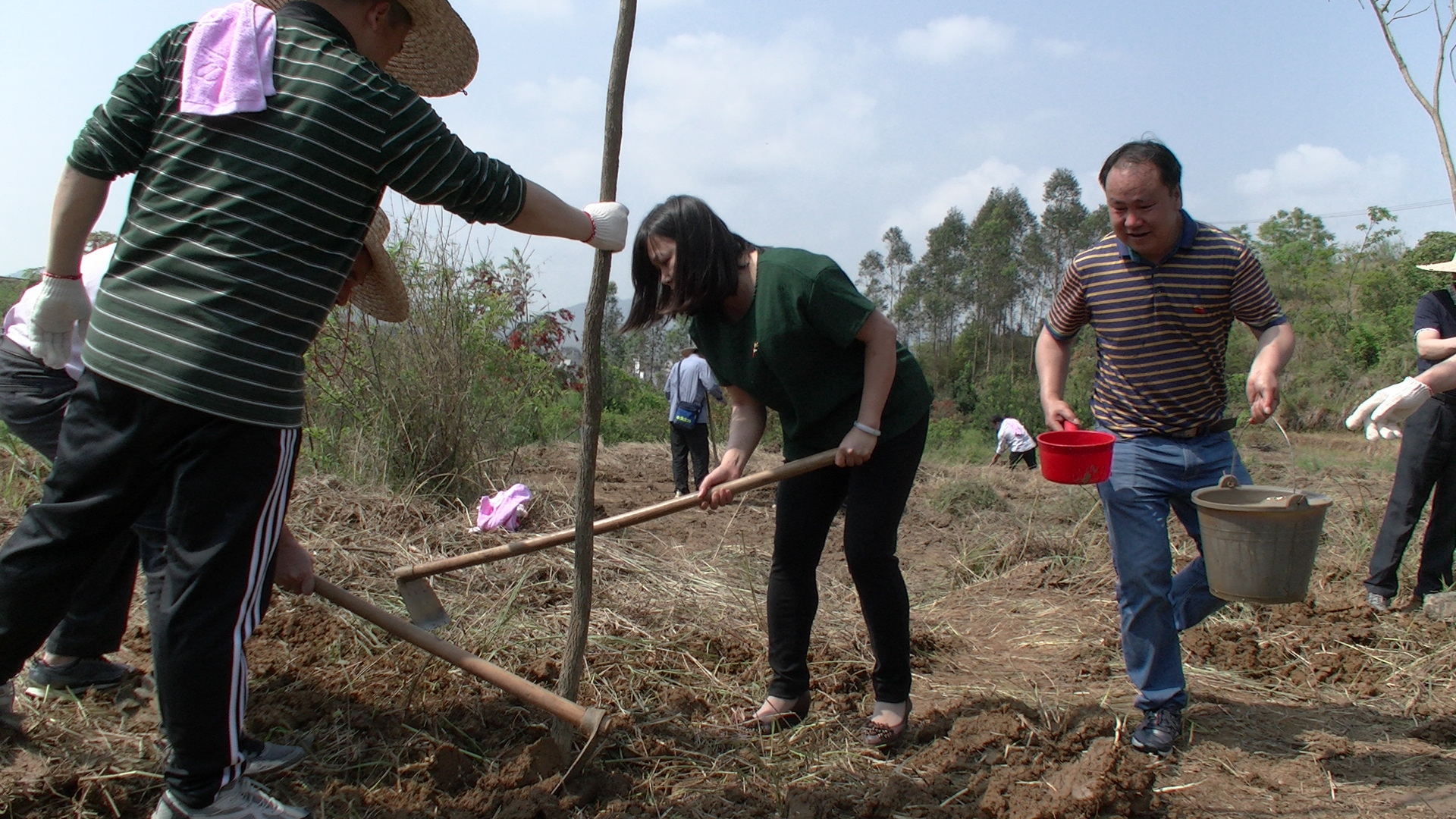 上午9点,政法委干部在梧州市委常委、政法委书记文建中,岑溪市委常委、政法委书记梁达斌的带领下,怀着兴奋的心情来到古河村,大家个个态度积极、热情高涨,兴致勃勃地投入到植树活动中。在植树现场,干部们分工明确,有的平土、有的挖坑、有的扶苗、有的培土,各个环节衔接有序,配合默契,充分体现了政法干部团结、协作、互助、友爱的精神。