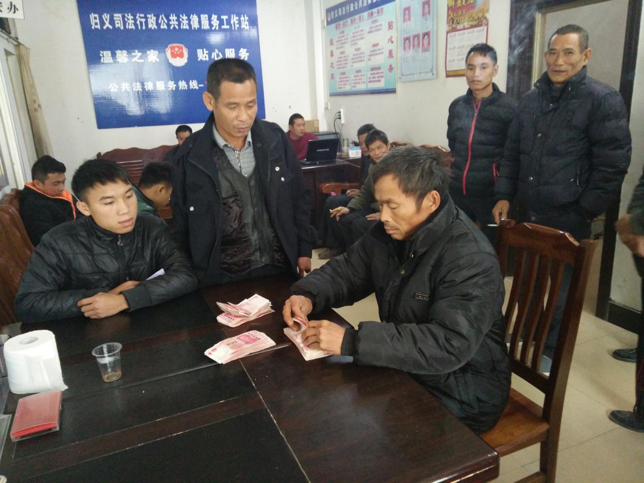 12月14日,调解保太村甘超龙电鱼意外死亡赔偿纠纷现场,各方签订调解协议并当场支付赔偿金