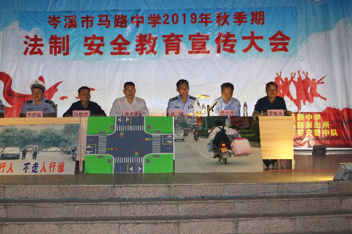 马路派出所、昙容交警中队、马路中学分别以《学生常见违法行为及应承担法律责任》、《当前道路交通形势、学生应具备的交通安全知识、交通安全案例分析》、《学生学习法律的意义、学生重点学习的法律法规》为主题进行授课。
