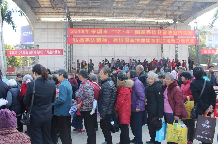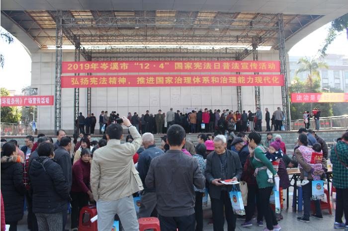 (岑溪市在市人民广场开展2019年国家宪法日普法宣传活动现场)