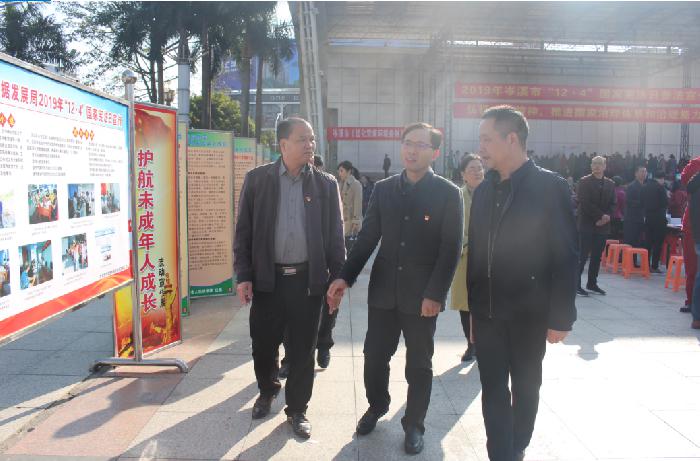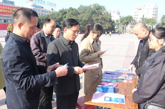 市委常委、市委政法委书记练泽明、市人大常委会副主任唐永清等到场指导开展宣传工作,并向群众发放普法资料,为群众讲解法律知识,解答群众提问;随后练泽明、唐永清等领导向有关单位工作人员了解他们的普法工作情况,并共同探讨创新宣传方式方法等问题。