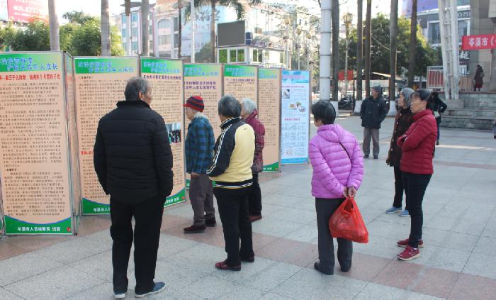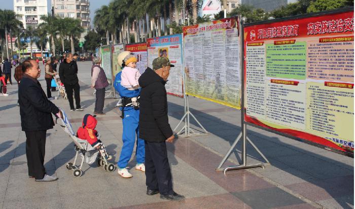 (现场群众在参观学习扫黑除恶专项斗争宣传展板内容)