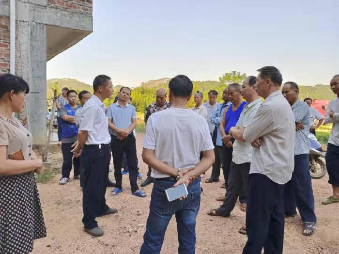 糯垌司法所陈伟勇所长(左二)现场调解邻里纠纷,与当事人讲情理,论事实。