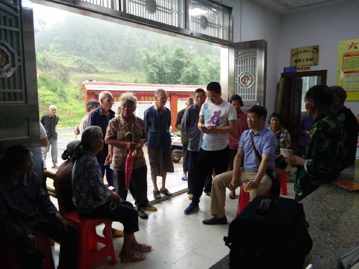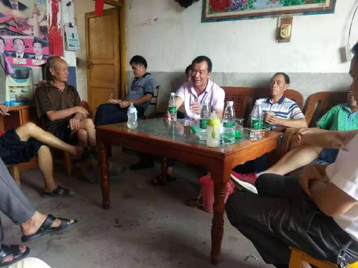 三堡司法所林斌强所长(左二)与一方当事人沟通,做纠纷当事人思想工作。