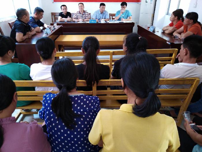 梨木司法所赖自海所长(前排右二)调解英娜皮具厂拖欠30名员工工资9万多元纠纷,维护农民工合法权益。