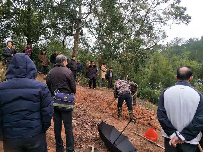 水汶司法所所长梁雅与信宜市朱砂镇加塘村干部联合调解加塘村陆姓家族与水汶社区徐姓家族间的坟山纠纷。