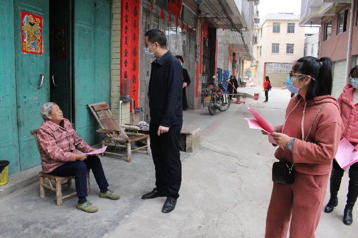 市司法局党组书记、局长莫健松进村实地走访群众,向群众宣传防控疫情有关知识