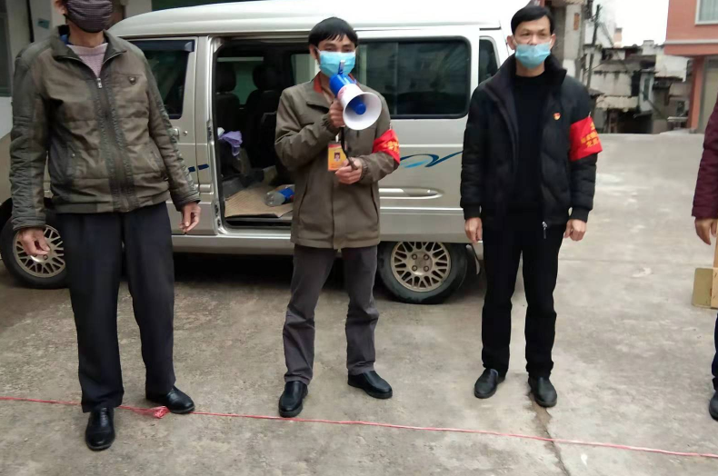 1月31日上午,像往常一样,莫耀松早早来到了当地党委政府安排的疫情防控宣传和交通劝导站,与该镇其他部门同志值勤站岗,通过广播喇叭喊话和面对面向过往群众宣传此次新冠状病毒疫情的最新进展、防控措施和有关要求。