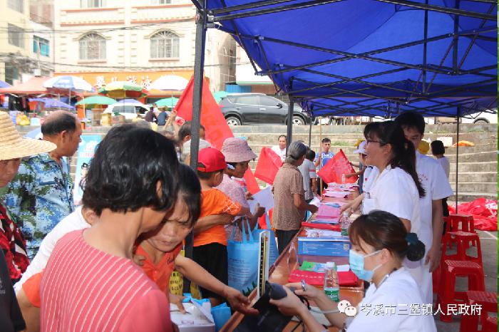 在进行禁毒宣传的同时,联合综治办、扫黑办等部门向群众宣传群众安全感、扫黑除恶、反邪教等活动,跟群众解释当前平安三堡的概况,展示当前三堡镇扫黑除恶斗争的成果,鼓励群众加入扫黑除恶斗争中来,提供涉黑涉恶线索。同时让广大群众认识邪教反人类、反科学、反社会的本质,倡导群众自觉加入反邪教、破除迷信、崇尚科学、传播文明的行列。还利用展板的形式,向群众宣传群众安全感知识、毒品的危害、各种邪教组织,使广大群众反邪教、禁毒的观念入耳、入脑、入心。活动期间,通过现场工作人员的引导,让更多群众用手机扫描进行“广西文明家庭拒绝邪教”和“对邪教说不”网络签名。