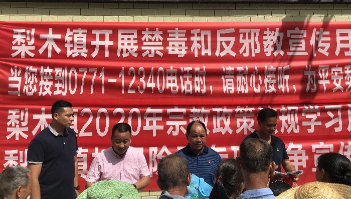 2020年新春之际,一场疫情的爆发,让除了疫情防控之外的各项工作都受到影响。近两个月,随着疫情逐渐平稳,各地复工复产工作有序推进。为有效防范抵制邪教,倡导群众健康生活,6月28日,岑溪市梨木镇结合“国际禁毒月”和梨木镇圩日的有利条件,在镇政府门口以摆地摊的方式开展反邪教宣传月活动,成功盘活革命老区梨木镇的反邪教宣传工作新热潮。