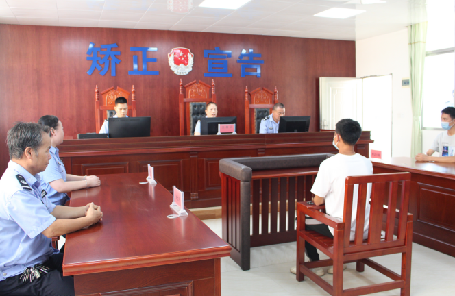 (在社区矫正中心解矫宣告室对社区矫正对象进行入矫宣告)