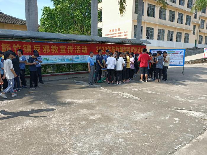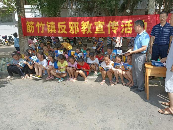 在筋竹中心小学、筋竹中学,各部门工作人员通过设置咨询台、拉横幅、摆展板、发放宣传资料等方式,向广大师生宣传禁毒、反邪教、扫黑除恶等知识。教育学生如何识别邪教,遇到邪教时要自觉做到不听、不信、不传,远离邪教、破除迷信,崇尚科学、反对邪教,并敢于向当地公安机关举报。通过本次活动,学校师生们掌握了反邪教知识,增强了坚决抵制邪教侵蚀的意识,纷纷表示不信邪教、相信科学,争取为营造平安校园、无邪校园做出自己的贡献。