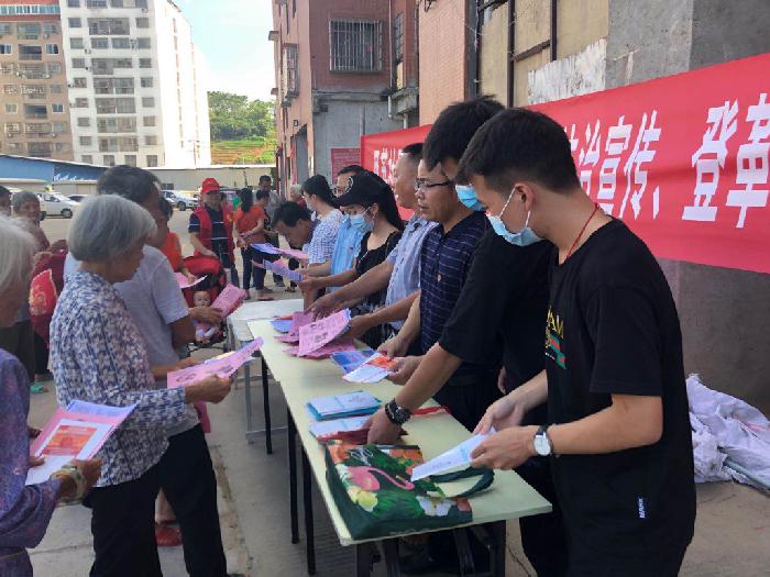 为积极响应我市政府关于启动预防2020年登革热疫情风险应急预案Ⅳ级的通知号召,9月17日,市司法局结合“双报到”活动开展党员活动日活动,组织党员干部到思英社区开展法治宣传、预防登革热疫情防控知识宣传工作。