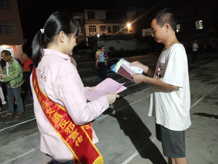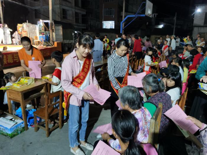 为进一步提高广大人民群众识毒识邪能力,归义镇禁毒办巧借牛娘戏“下村”的机会,牵头组织志愿者在现场开展以“健康人生、绿色无毒”“崇尚科学、反对邪教”为主题的反邪禁毒宣传活动,让在座观众在认识毒品危害的同时,拒绝邪教这一“精神毒品”。