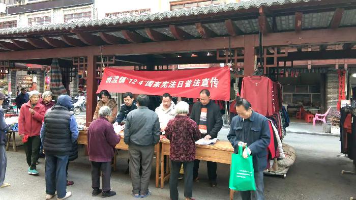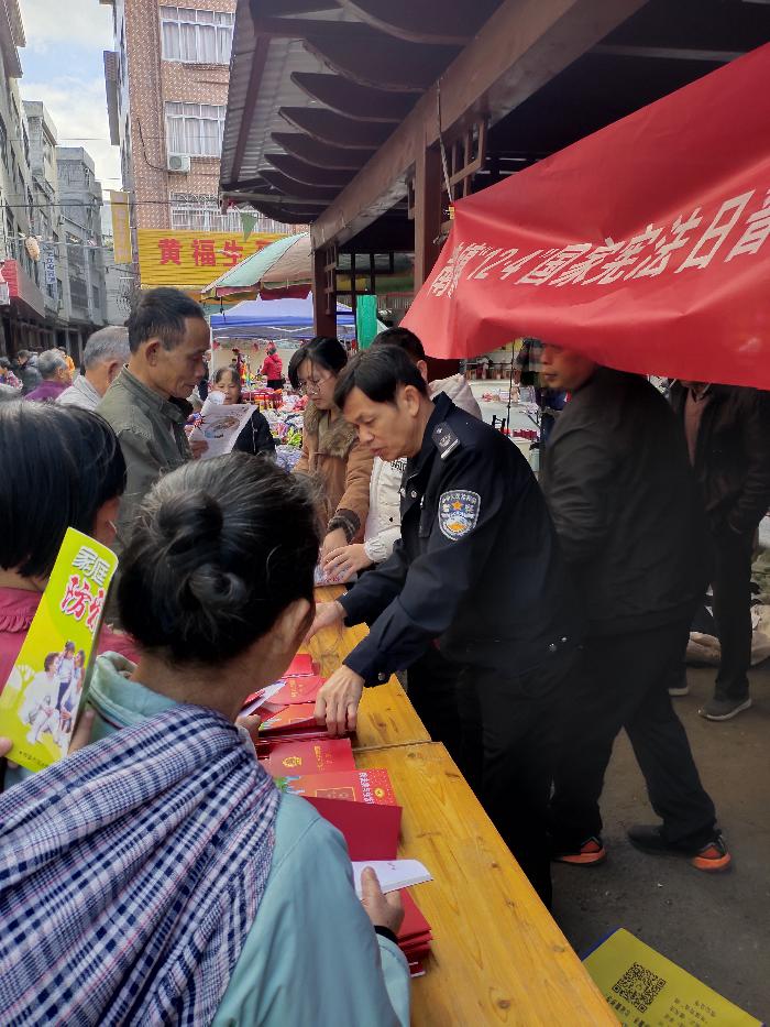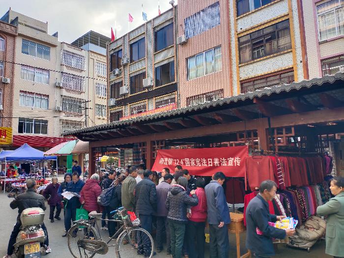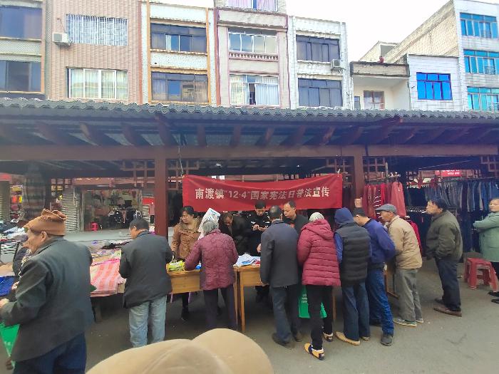 12月4日为法定的国家宪法宣传日,也是南渡镇赶圩赴集的好日子,趁着群众们赶集的热闹,南渡镇组织了综治办、司法所等相关部门,在南渡社区摆摊设点,积极开展反邪教知识宣传活动。