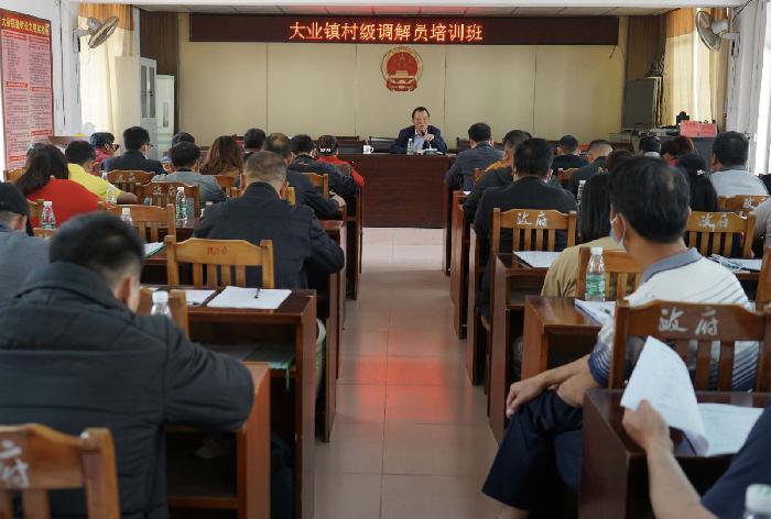 培训班上,大业司法所所长梁树伟进行授课。梁树伟主要围绕村(社区)人民调解组织的性质、地位和人民调解工作的基本方法、调解技巧、调解协议书的制作等业务知识进行重点讲解培训,并结合调解案例进行详细的调解技能指导,旨在提高“两委”干部的培训效果,确保他们听得懂、用得上、懂变通。此外,梁树伟还与大家一起学习了调解工作中适用的法律法规。