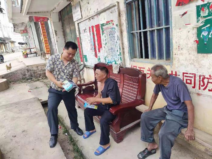 镇党委书记曾晓娜、镇党委政法委员、人武部部长黎瑞强入户宣传反诈反邪知识