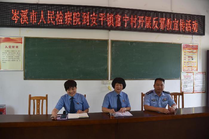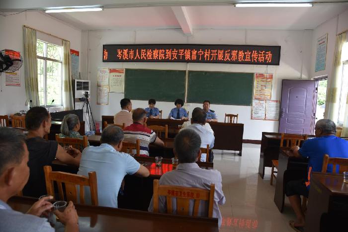 为进一步提高广大群众反邪教的意识,6月30日,岑溪市检察院组织干警深入该市安平镇富宁村开展反邪教宣传进农家活动。