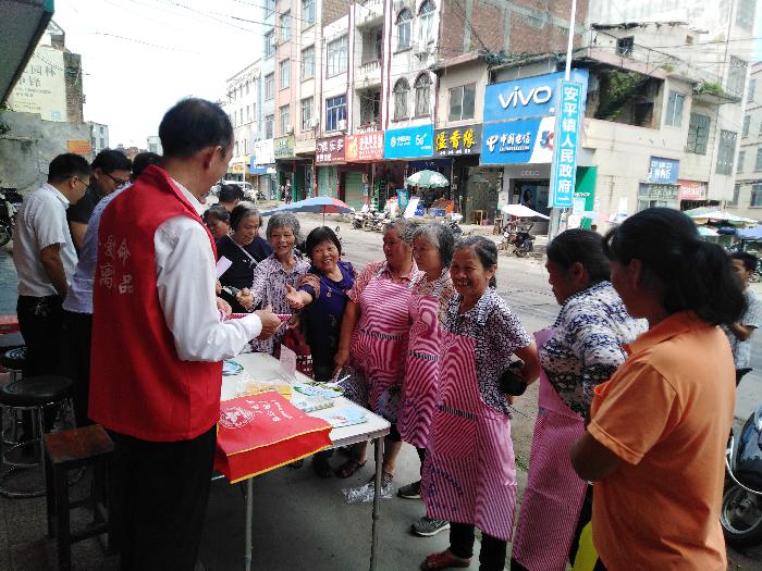 禁毒志愿者到安平街各摊位做禁毒、反邪教宣传
