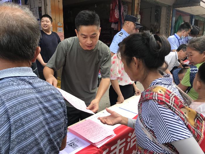上图为:9月7日上午,筋竹镇开展提升群众安全感宣传活动