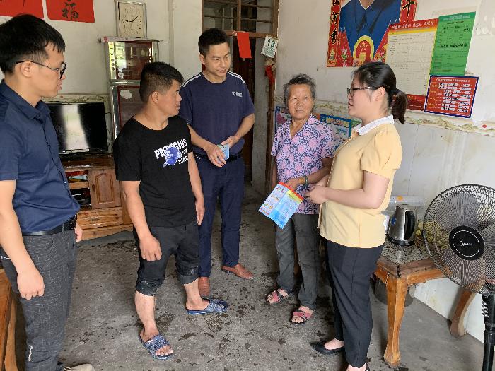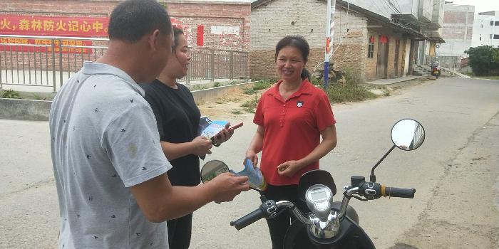 上图为:镇党委书记曾晓娜、党委政法委员、人武部部长黎瑞强入户宣传反邪教知识