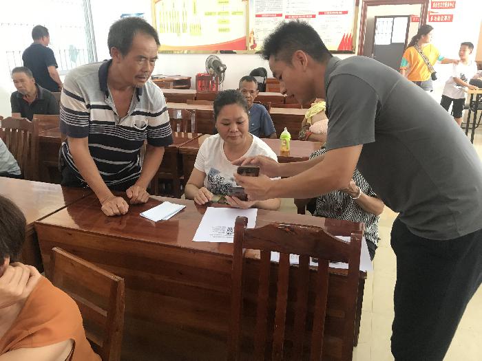 上图为:党委政法委员、人武部部长黎瑞强指导群众参与“广西文明家庭拒绝邪教”网络签名活动