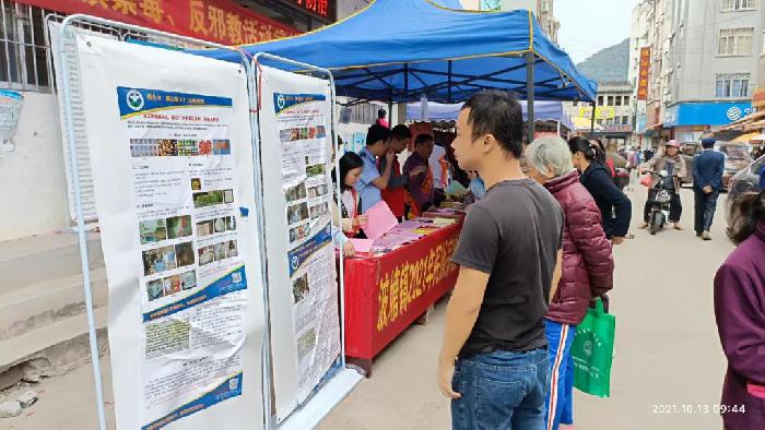 10月13日上午,由波塘镇党委、政府牵头,组织综治办、司法所、派出所等相关单位部门,在波塘街集市设立摊点开展反邪教、禁毒防毒、普法、预防电信诈骗以及提升群众安全感满意度等综合宣传活动。