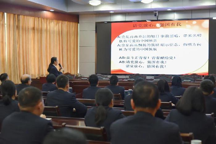 邓萍同志还结合能动检察,重点讲述了伟大建党精神、新时代梧州精神、敢闯敢冒敢为天下先的岑溪精神。最后以一张白纸为喻,呼吁干警们大力弘扬伟大建党精神,爱岗敬业、奋力拼搏,共同描绘岑山溪水美丽画卷。