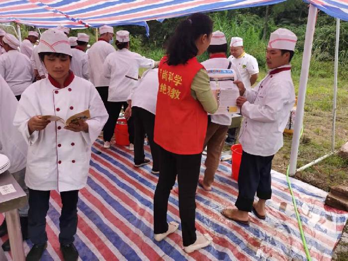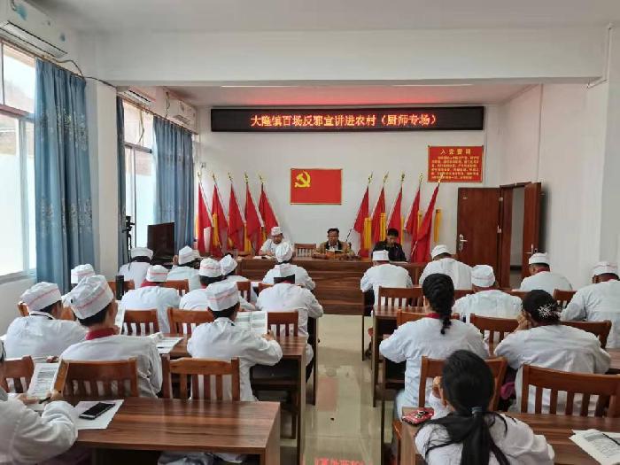 为进一步推动全镇反邪教工作落实落细,增强辖区广大居民群众对邪教反人类、反科学、反社会罪恶本质的认识,提高自我保护意识和能力,2021年11月5日,大隆镇综治中心、司法所利用辖区举办2021年中式烹调师培训班的契机,联合厨艺培训学校为学员开展反邪教宣传活动。