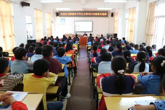 为进一步提高大隆镇青少年毒品和邪教预防教育知识,巩固学校毒品、邪教预防教育成果,遏制和减少毒品、邪教对校园的侵蚀和危害,引导青少年提高对毒品、邪教的识别能力, 落实加强未成年人涉毒涉邪风险防范工作。2021年11月11日,岑溪市副市长欧宇、大隆镇镇长甘露到大隆镇西宁中心小学精彩纷呈地上了一堂以“不让毒品邪教进校园”为主题的禁毒反邪专题课。