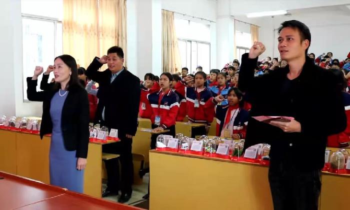 课堂上,欧副市长深入浅出地给学生们阐述毒品的种类,毒品的危害性以及作为一名学生应该如何预防和抵制毒品,以血的教训、铁的事实告诫同学们时刻保持警惕的头脑,不对毒品抱有好奇心和侥幸心理,树立起正确的人生观,坚决向毒品“说不”,做到不相信、不尝试、不进入、不结交,做一个“洁身自好、誓不沾毒”的好青年。接着,200余名师生在副市长欧宇的带领下举行了禁毒宣誓仪式,“我是中华民族的儿女,不忘耻辱,坚决与毒魔作斗争......我将履行禁毒誓言,为国家禁毒事业作出自己应有的贡献。”铮铮誓言久久回荡在校园上空,禁毒思想深入学生心中。