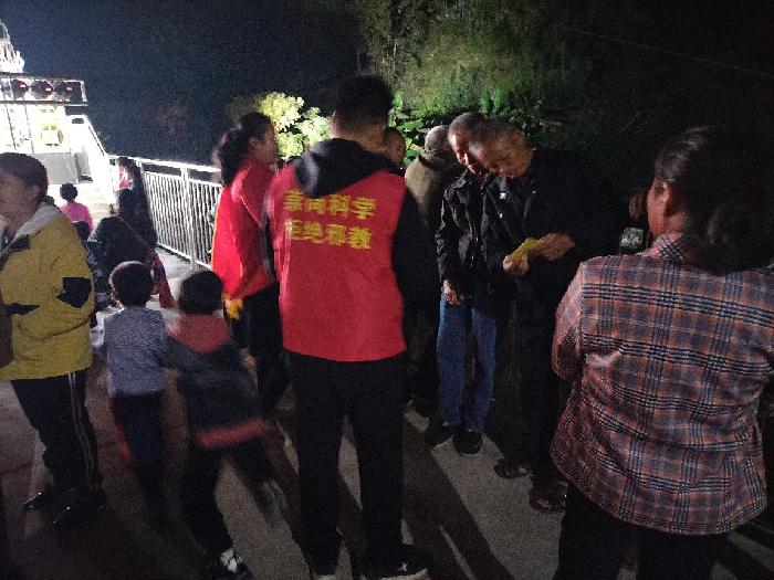 晚会期间,工作人员还通过悬挂横幅标语、放置宣传展板等方式为群众进一步丰富禁毒反邪知识,并积极发放单页读本,耐心解答群众的疑问,引导村民树立“珍爱生命、崇尚科学”的观念,提高防范意识和能力、坚决远离毒品和邪教。