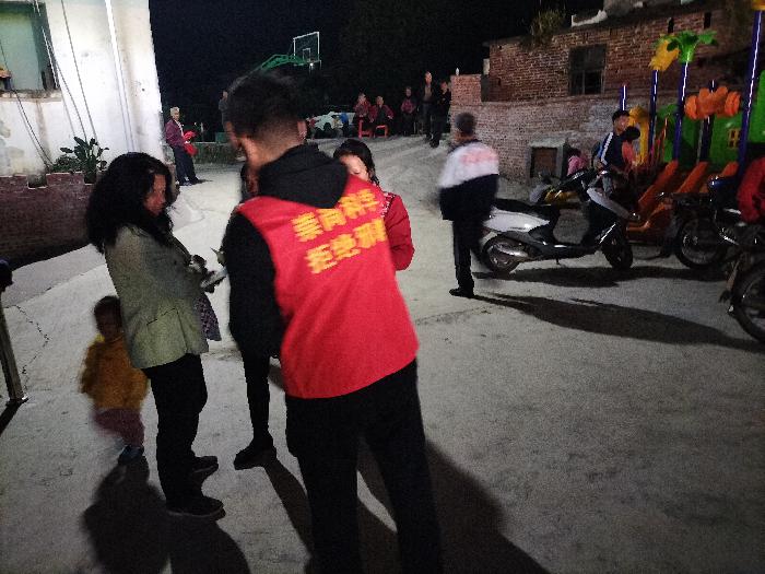 2021年11月16日晚,大隆镇旺坡村开展岑溪市宣传贯彻习近平总书记“七一”重要讲话精神暨“诗词进乡村”文艺晚会,为深入推进辖区毒品预防教育和抵制邪教工作的扎实开展,营造浓厚的禁毒拒毒、反邪防邪的社会氛围,全面提高群众安全感满意度,岑溪市大隆镇综治中心、禁毒办借此契机开展禁毒反邪宣传活动。