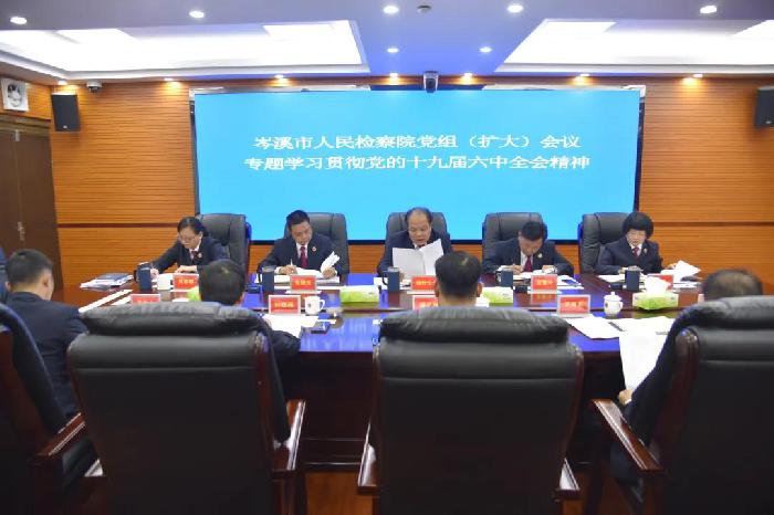 11月16日,岑溪市人民检察院召开党组(扩大)会议,专题学习贯彻党的十九届六中全会精神,研究部署贯彻落实措施。该院党组书记、检察长魏钟生带头领学,院领导班子、检委会专职委员及各部门负责人参加会议。