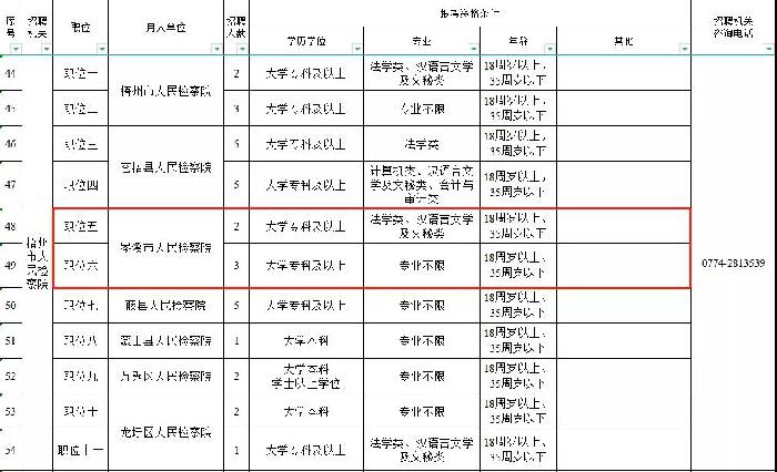 各职位具体报考条件详见《广西检察机关2021年度聘用制书记员招聘计划表》。