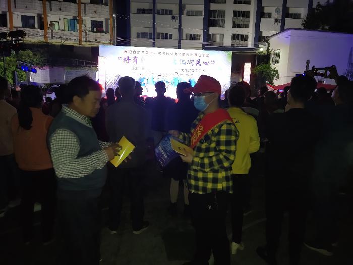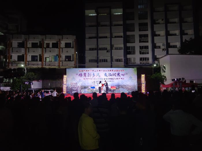 2021年11月20日晚,梧州市群众艺术馆、岑溪市华城安全服务有限公司在水汶镇政府院子内举办“培育新乡风 文化润民心”文艺晚会,吸引了300余名群众到现场观看。