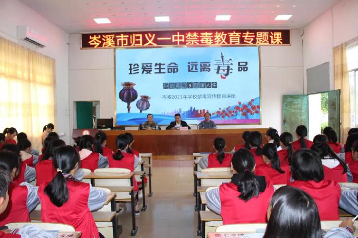 “远离毒品,珍惜生命,坚决与毒品作斗争!从我做起,以抵制毒品为荣,以沾染毒品为耻!......”一声声有力的宣誓在归义镇各中小学校园里响起。