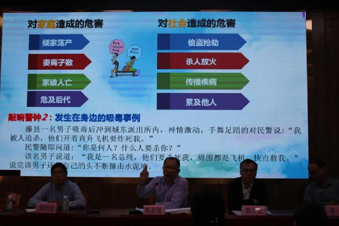 课堂上,授课人以当前青少年学生的思想动态为切入点,从“什么是毒品”“毒品的危害”“如何预防和抵制毒品”等三个方面的内容,全方位分析了当前的毒情以及毒品的危害,并通过列举一些未成年人涉毒违法犯罪的典型案例,以案释法,引导学生们洁身自爱,切莫以身试法。