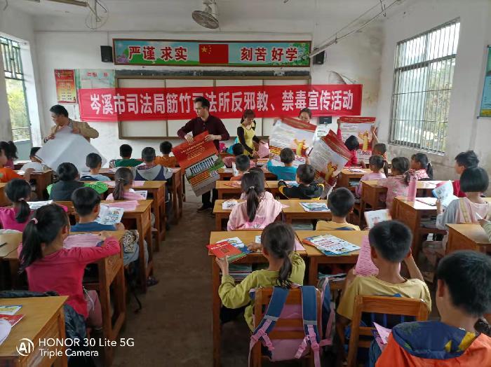 “邪教真可怕,我们小学生一定要相信科学,远离邪教。”一位姓黄的学生坚定地说。在筋竹镇罗敏中心小学,工作人员通过悬挂反邪教横幅,发放反邪教宣传画册的方式,用具体生动的事实、直观形象的画面和简洁朴实的语言为师生讲解了邪教的性质特征与危害,遇到邪教活动怎么办等知识,教育学生要崇尚科学,珍爱生命,远离邪教。