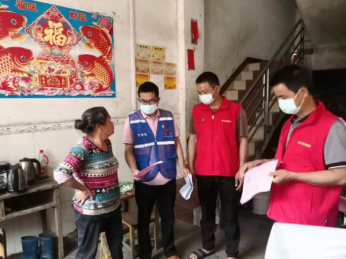 “阿公,您好,这些宣传资料里面有疫情防护、反邪教、防盗、防诈骗、禁毒等知识,送给您看看。”身穿红马甲的筋竹镇社区网格员向群众宣传道。