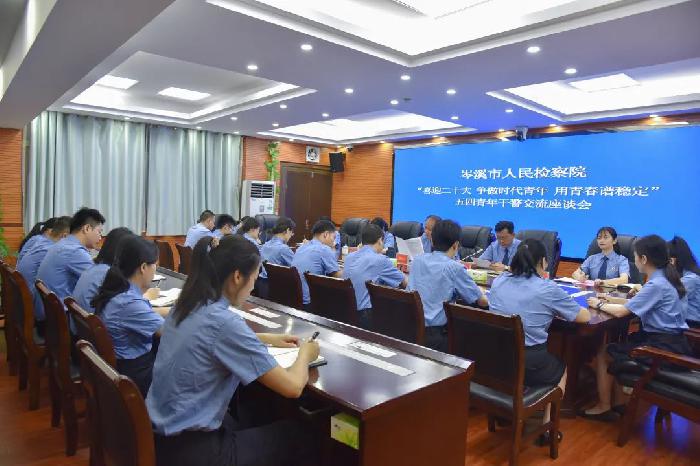 会上,青年干警围绕主题,就如何在各自岗位上实现理想、奉献青春踊跃发言、各抒己见。整个座谈会氛围轻松活跃、真情流露,展现出检察青年朝气蓬勃、奋发向上的精神风貌。