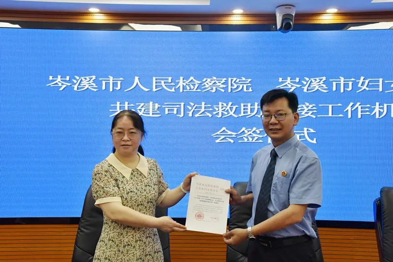 司法救助是检察机关参与社会综合治理的重要渠道。为进一步发挥职能优势,推动国家司法救助工作与社会救助共同开展,助力乡村振兴。近日,岑溪市检察院联合市退役军人事务局、市妇联召开共建司法救助衔接工作机制座谈会,并举行会签仪式。