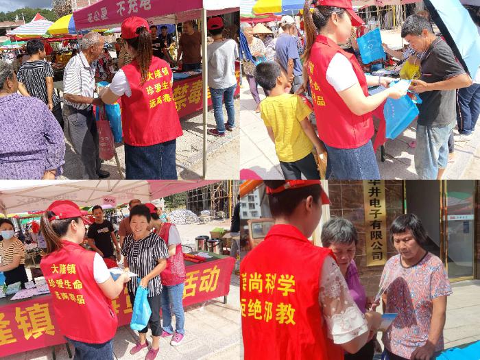 为持续增强群众防范邪教、抵制邪教的意识和能力,全面提升辖区和谐文明程度,维护社会平安稳定,2022年8月19日,大隆镇综治中心利用赶集日,联合市医保局在大隆综合市场开展2023年医保政策宣传活动暨反邪教警示教育活动。