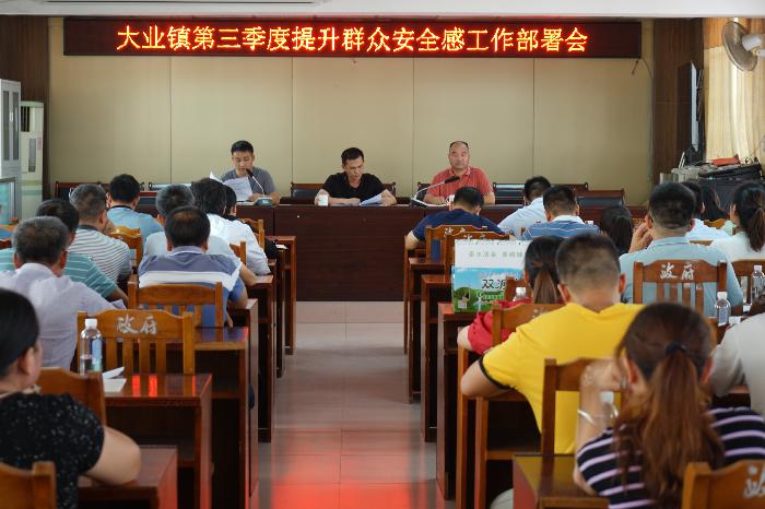 大业镇党委、政府组织召开第三季度提升群众安全感工作部署会,会议要求我镇各单位全体干部职工要提升政治站位,切实增强抓好平安建设的责任感,把平安建设作为当前最重要的政治任务,强化忧患意识和底线思维,补短板、强弱项、抓关键,推动平安建设工作各项任务落地落实,确保社会大局和谐稳定。