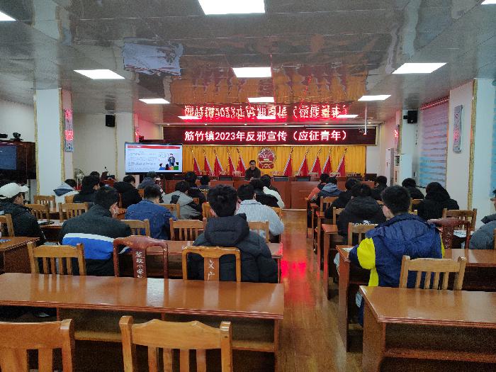 2023年1月29日,筋竹镇组织开展春季征兵初检工作,筋竹镇综治办、禁毒办以此为契机,开展禁毒反邪宣传活动。
